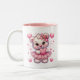 This ceramic coffee mug is shown with a cute Valentine teddy bear hearts print.