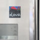 Original oil painting by artist, Susan Payne-Trutna of a Heart Garden filled with chocolate heart flowers and a heart shaped chocolate box. The original artwork also contains a hand painted LOVE! This charming magnet is a perfect Valentine.