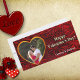 8x4 photo Valentine's Greeting Card. Personalize your name and photo with this gold heart-shaped frame. Red decorative fabric-looking abstract background. Customize it further for more changes.