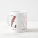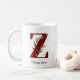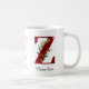 Add a touch of botanical romance to your morning routine with this custom Initial "Z" Coffee Mug. Featuring a bold, serif letter "Z" filled with a rich red heart pattern and accented with delicate watercolor green leaves, this mug blends classic typography with a modern romantic aesthetic.