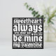 A romantic WordArt pattern for your Valentine, with typography in shades of white with My Valentine, Be Mine, Wild About You, Smitten, Always, True Love and Sweetheart on a black background. You can personalise the greeting on the back to your own words.
