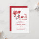 A sophisticated, red rose invitation that's well-suited for any occasion. Featured as a Valentine's party invitation, the word "love" has a heart in the place of the letter "o". (FP)