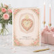 A sacred and tender Valentine design rooted in the language of divine charity and grace. This elegant composition features the Holy Spirit as a radiant Dove, encircled by a heart of soft blush roses, crowned with the Holy Cross and set upon a gentle antique lace ground. The interior verse draws from Holy Scripture, recalling that love is patient, kind, and enduring, and is perfected only in God.