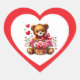 This heart sticker is shown in a double heart design with a cute Valentine teddy bear print.