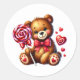 Sticker is shown in a cute teddy bear Valentine hearts print.