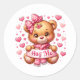 Sticker is shown in a cute teddy bear Valentine hearts print.