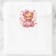 Sticker is shown in a cute teddy bear Valentine hearts print.