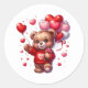Sticker is shown in a cute teddy bear Valentine hearts print.