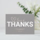 Say thank you to friends and family with this special Valentine themed thank you card. The design features the words Love and Thanks trendy hand lettered script typography with a bold modern font and heart. The card reverses to a pale pink watercolor x and o pattern. To see the matching invitation suite visit www.zazzle.com/dotellabelle.