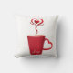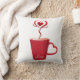 This throw pillow is shown in a white colour with a cute festive Valentine coffee hearts print design in red.