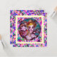 Whimsical vibrant ,artistic painting with colourful confetti..Mythical love between Harlequin and Columbine,Acrylic painting inspired from Commedia dell'Arte - Venice. Bright purple pink yellow green colours.Easy to customise as wedding party announcement,romantic engagement save-the-date ,bridal showers,birthdays,Sweet 16, Quinceanera parties,anniversary ,New Year's Day eve celebrations favours ,thank you,place cards or just about any event you wish!
