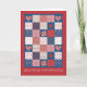 A chic Valentine's Day greeting card, with a faux-patchwork pattern of hearts and red roses, with a matching red border and the words, 'Happy Valentine's Day' in Danish, in fancy white lettering. Part of the Posh & Painterly 'Hearts and Roses' collection, this design fits all three greeting card sizes.