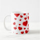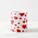 This ceramic coffee mug is shown with a Valentine's hearts print.