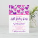 Turn the invitation over, and you'll discover the back adorned with the same cute hearts pattern in vibrant purple and vibrant pink. This cohesive design ensures that every aspect of the invitation reflects the love and joy that will fill the celebration.