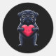 Valentines Day Black Pug Heart Funny Dog Mom Dad F Classic Round Sticker