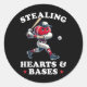 Valentines Day Boys Baseball Player Stealing Heart Classic Round Sticker
