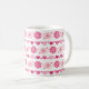 Valentine's Day Candy Hearts Flowers Pattern on a white coffee mug, beverage cup.
