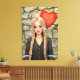 3D digital render of a beautiful teenager girl in a retro dress holding a balloon in a heart form on a stone wall background. Perfect Valentine's Day gift