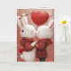 Cute white Bunny couple wearing red jackets The background is pink with pretty, beautiful red hearts. "Happy Valentines Day"