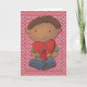 Valentine's Day card from a young boy with dark skin to his girlfriend. The boy is holding a heart with words on it, and the background is red with polka dots. Thanks to Creative Fabrica and Design Cuts for some of the elements in the design.