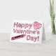 A Valentine's card featuring text design "Happy Valentine's Day!" and Heart in upper right corner. Text and heart appear to have been coloured by the pink crayon illustrated at bottom left. Personalise the text inside.