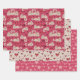 Valentine's Day Cat Tails of Love with 2 loving white Persian cats with their tails forming a heart, striped waves of hearts, and more quotes of love and friendship in this 3 piece set of wrapping paper sheets.