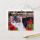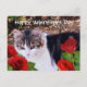 VALENTINE'S DAY CAT WITH RED ROSES HOLIDAY POSTCARD