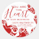 A cute sticker for your customer's on Valentine's Day (any time you want to show them some love!. This striking red heart design is the perfect way to thank your customers or clients The words "You are the heart of our business" appears in red font on a white background on the front of the sticker, with room for your personalised organisation business name and contact details.. A modern and striking way to say thanks and celebrate Valentines with your customers.
