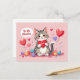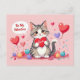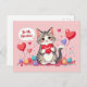 Wish everyone a happy Valentines Day this year with this cute postcard featuring a be my valentine illustration of a cartoon cat with hearts!