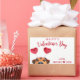 Cute Happy Valentine's Day animal pet illustration featuring a curious dog wearing a red heart hairband. Seasonal holiday greeting written in modern typography letters.
