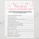 Valentine's Day Do You Remember Game is a party game. Follow your memory and answer all the questions. Don’t peek at each other’s answers. After finish it all. Show the answer to each other and check the answers. Let’s recall the touching moments together.