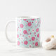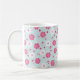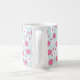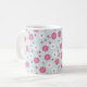 Valentine's Day Flowers Hearts Pink Pattern on a white coffee mug, beverage cup.