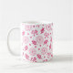 Valentine's Day Flowers Ribbon Hearts Pink Pattern on a white coffee mug, beverage cup.