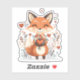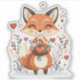 A smiling fox holds a bouquet of flowers and hearts in this cute cottage core Valentine's Day design.