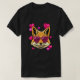 I give wanted to give this a 4 instead of a 5 because these Basic DARK T0shirts run unexpectedly SLIM or Narrow. Which is great if you do not have a potbelly, but I have a paunch. It isn't the shirt's fault that I've got a beer belly. The design and shirt itself is a quality cotton shirt. The color is more of a deep purple, but still a very pretty color. The Basic DARK T-shirts run a bit SLIMMER than the Basic Ts. The neck is a fraction narrower (or seems to be narrower) also. I'm a paunchy middle-aged woman and my neck is 12 inches (31cm) thick and the neckline fell about the same as in the photo of the man, and I had the desire to tug it a bit. So if you're a thick necked man or like loose shirts, be aware these are slimmer shirts. Once I get rid of my lockdown paunch it'll look great. The shirt washed well in cold water with no apparent bleeding. We don't have a dryer, so it hung dry. Did not shrink. Love the colors and the design. The design looks smaller on my shirt than it does on the model on-line. But still, it looks good on the shirt. The printing looks as it does on the model, just the size seems fractionally smaller. Washed garment in cold water, hung dry and design appeared unaffected.