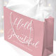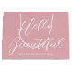 Personalized gift bags add an extra touch of luxury to any gift. This stylish design features "Hello Beautiful" in brush script typography, and can be customized with the recipient's name and a "Happy Valentine's Day" message. A versatile template that can be adapted for a birthday, bridal shower, bachelorette party, Galentine's Day, and other special occasions. Its simple, elegant design is a unique addition to your gift wrap, and a lovely choice for a girlfriend, wife, partner, daughter, or best friend. Available in either a matte or glossy finish. Printed colors: pink and white, or customize the colors with the design tool.