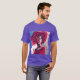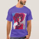 I give wanted to give this a 4 instead of a 5 because these Basic DARK T0shirts run unexpectedly SLIM or Narrow. Which is great if you do not have a potbelly, but I have a paunch. It isn't the shirt's fault that I've got a beer belly. The design and shirt itself is a quality cotton shirt. The color is more of a deep purple, but still a very pretty color. The Basic DARK T-shirts run a bit SLIMMER than the Basic Ts. The neck is a fraction narrower (or seems to be narrower) also. I'm a paunchy middle-aged woman and my neck is 12 inches (31cm) thick and the neckline fell about the same as in the photo of the man, and I had the desire to tug it a bit. So if you're a thick necked man or like loose shirts, be aware these are slimmer shirts. Once I get rid of my lockdown paunch it'll look great. The shirt washed well in cold water with no apparent bleeding. We don't have a dryer, so it hung dry. Did not shrink. Love the colors and the design. The design looks smaller on my shirt than it does on the model on-line. But still, it looks good on the shirt. The printing looks as it does on the model, just the size seems fractionally smaller. Washed garment in cold water, hung dry and design appeared unaffected.