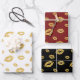 VALENTINE'S DAY - FAUX GOLD GLITTER LIPSTICK KISS: Three separate wrapping paper sheets, coordinated with playful sexy lipstick blot kisses with white, red, and black backgrounds..