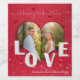 Lovely Valentine's Day illustration featuring a luxury red elegant glitter background, highlighted with sparkling stars and heart bokeh decorated with 3d LOVE letters and modern typography script "Happy Valentines". Easily to change the sample photo with your own one.