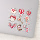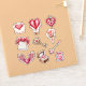 This sheet of ten contour custom-cut vinyl stickers features a charming Valentine's Day Heart and love theme, perfect for adding a touch of romance to various projects. The designs include a heart-shaped hot air balloon, a bouquet of flowers, a golden key with intricate heart details, a love letter with a red heart inside, a heart-shaped lock, a jar filled with hearts, a heart with angel wings, a heart with Cupid's arrow, a heart-shaped ring in a box, and a blank card adorned with roses. These stickers are ideal for scrapbooking or journalling, allowing users to embellish their pages with symbols of love and affection. Additionally, they can be used to decorate greeting cards, gift wrapping, phone cases, or planners, making them versatile for any creative endeavour. The soft, pastel colour palette and delicate illustrations make these stickers suitable for adding a romantic or whimsical touch to any craft project.