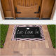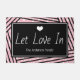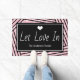Modern trendy doormat featuring a stripes and white dots design in pink, black, and white. The centre has the words "Let Love In".