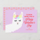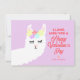 Valentines Day Llama Pun Kids Classroom Exchange Holiday Card is perfect for kids to exchange at school. The card is modern and cute designed with a llama on the left side. The text is "Llama wish you a Happy Valentine's Day" in dark dusty rose colour and calligraphy script lettering. The child's signature name is across the lower area. The adorable white llama has her neck stretched towards the centre and has pretty flowers in her hair and of course long black eyelashes. The back of card has a pattern of tiny pink hearts. The background is customisable pastel lavender purple.
