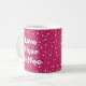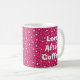 Valentine's Day Love After Coffee Hearts Pink Pattern on a white coffee mug, beverage cup.