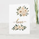 A elegant floral arrangement featuring three blooming cream-colored roses with subtle peach tones, nestled among lush dark green leaves. Above this beautiful bouquet, the word "love" is written in a sophisticated, shimmering gold script. The entire design is set against a transparent background