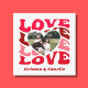 Home decor for Valentine's Day. Celebrate love with this square stretched wall canvas, personalised with your names or initials and your favourite couple photo on a heart design with red text.