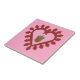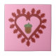 This awesome tile features a digital art image of an acorn surrounded by a red heart. The acorn is brown with a green cap and cute little eyes with black pupils and a smile on its face. the heart surrounding the acorn has a series of pretty red oak leaves attached to it pointing outside the heart creating a beautiful leafy pattern.
