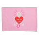 This awesome double sided pillowcase features a digital art image of a cute axolotl, a Mexican Salamander, holding a red heart. The Axolotl is pale pink with huge black eyes and a big pink smile. It has bright pink feathery gills on the side of its head and a bright pink plume on its tail. There is pink text inside the heart that reads Love You a Lotl.