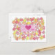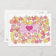 Send Valentine's Day greetings with this postcard featuring bright orange, yellow and pink wildflowers with pink heart and love.