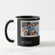 This design features modern minimalist black and white custom two photo coffee mug. Perfect gift for your girlfriend, wife, boyfriend or husband on valentines day. Photos and text are easily editable. If you need help with the customisation of the product or need more products from this collection please message me via Zazzle.