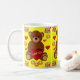 I like to buy and review my own work to ensure you get an outstanding product and I’m happy to give the Primary Colours Beach Football Mug 5 stars because it meets my expectations completely. Pleased with it I am. Zazzle mugs are well fabricated, microwave and dishwasher safe. And this yellow red and blue panoramic wraparound motif is sealed with a durable and sparkling Orca polished gloss glaze finish. It’ll never rub off! The size and energy of two jostling figures and a burly goal keeper fit the mug's circular shape well. There's momentum in the carousel effect as the two jostling figures repeat and move right around the mug and meet a burly goal keeper. Big sharp original images precisely drawn and delicately captured in blue and red with plenty of bright yellow! An ideal gift for anyone who plays ball! A fun gift for all beachball and football fans. A pair with the Retro Grey-Grain Beachball Player Mug. Available in two sizes and several styles including Black Ringer, Travelling, and Stern. Go have a peek!